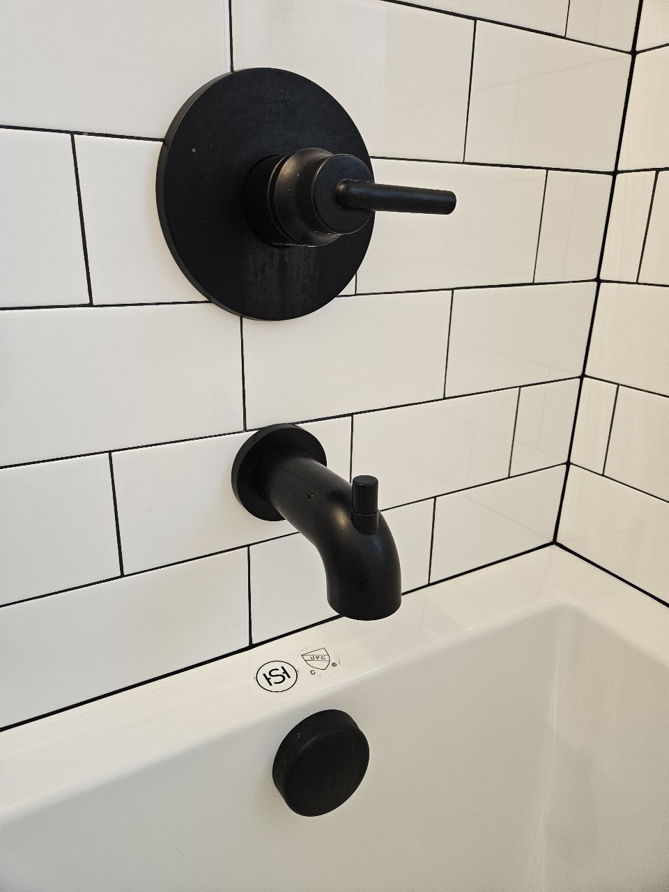 Fixtures and hardware: toilets, sinks, faucets, showerheads, grab bars, and modern finishes.